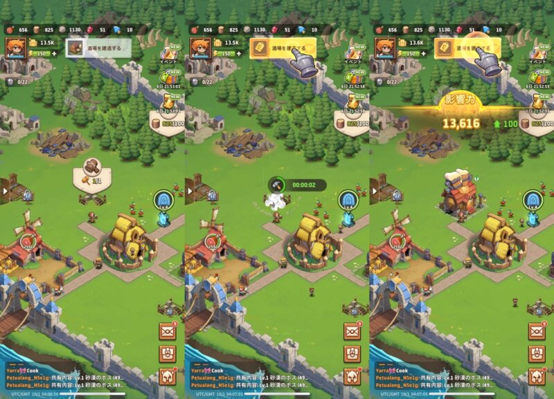 建築を進めることで、食料を生産したり、仲間を募集することができます♪