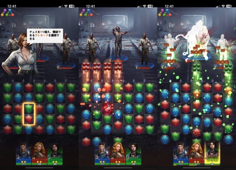 パズルを組み合わせて攻撃するので、ゾンビゲームが苦手な方でも楽しめます♪