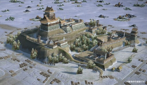 オープンワールド形式のマップで1000人以上が同時対戦し、一門(ギルド)と協力して二条御所を目指します。本城から部隊を派遣して土地を占拠し、地形を協議した戦略が鍵となります。